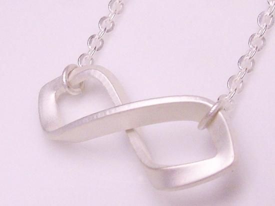インフィニティ(∞)のチャームにさりげなくスワロフスキーを添えた、繊細な印象のネックレスです。